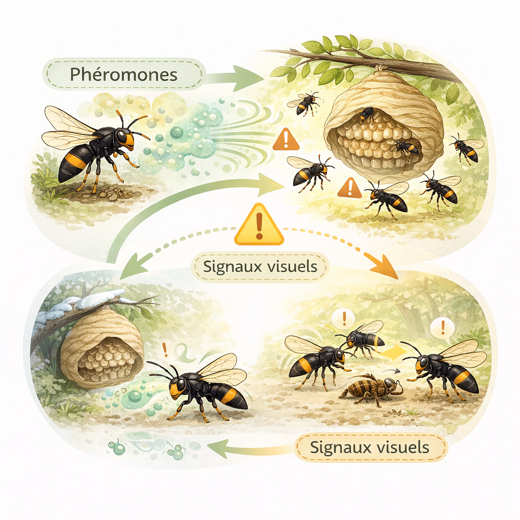 The communication methods of the Asian hornet explain how individuals coordinate to hunt, defend the nest, and organize the life of the colony.