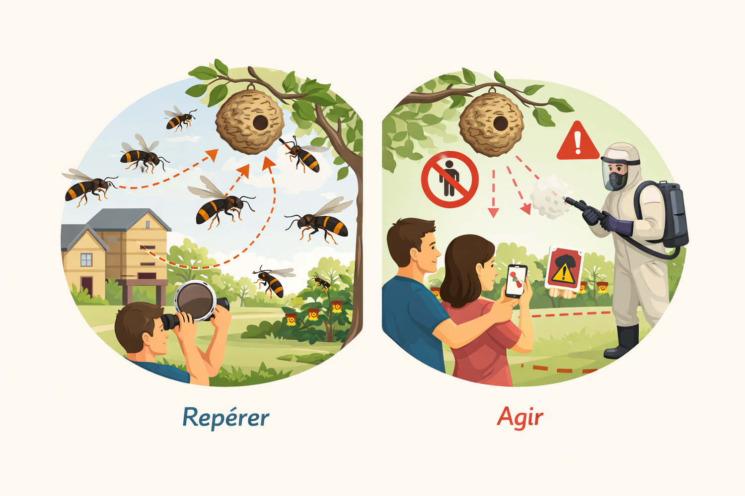 Knowing how to spot an Asian hornet (Vespa velutina nigrithorax) nest as early as possible is essential to limit the risks to humans, animals and bees.